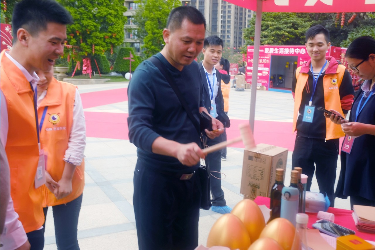 為回饋客戶,家居節(jié)特設(shè)定了砸金蛋活動(dòng)。凡是在此活動(dòng)中簽了合作的業(yè)主均有機(jī)會參與,且百分之百中獎(jiǎng)。