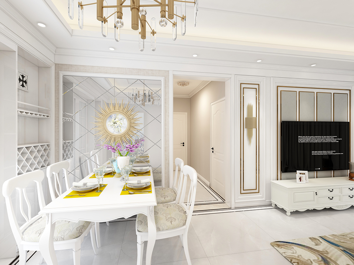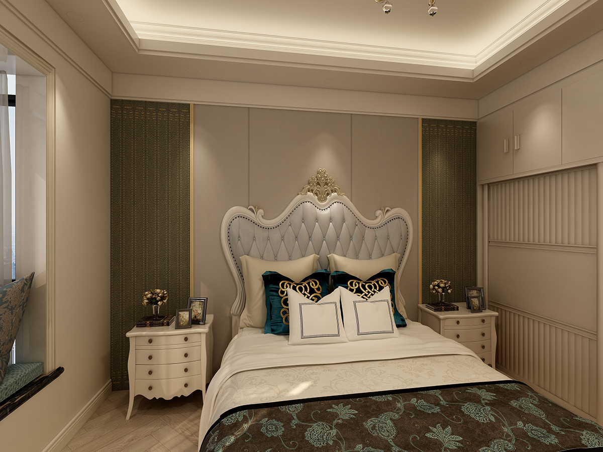 糅合了簡約主義的利落、爽潔和傳統(tǒng)歐陸風(fēng)格的精致、華麗,淺淡的藍灰色加以玫瑰金裝飾線條,整體溫馨、時尚